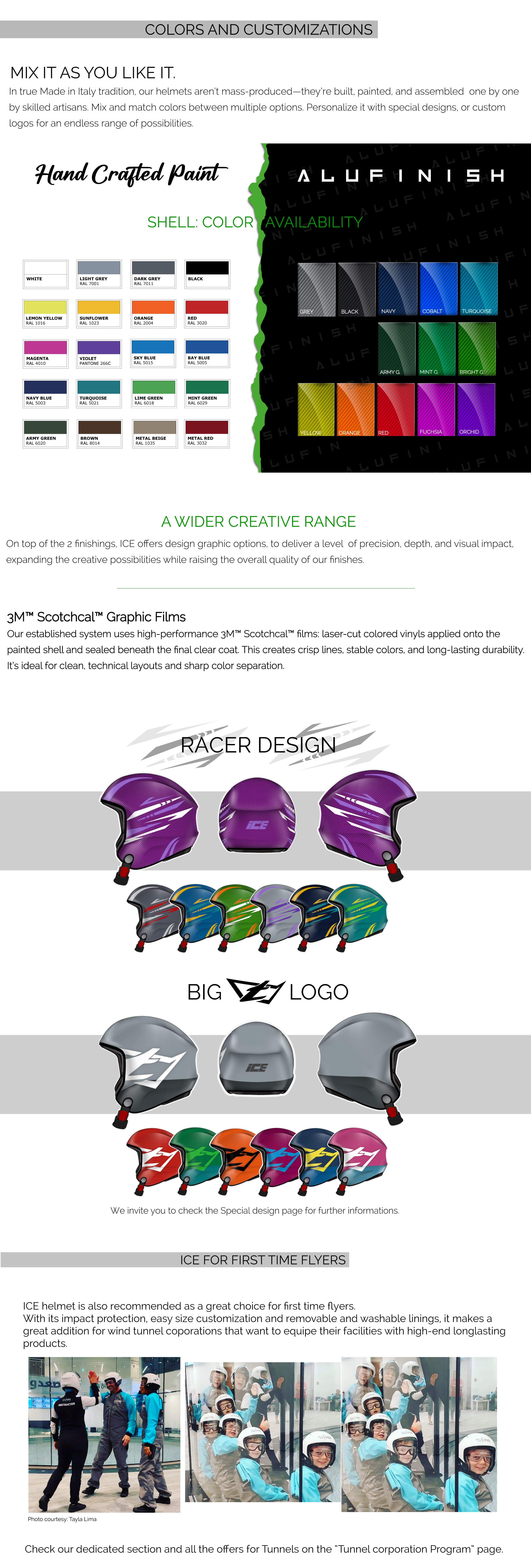 Step by step you can fully customize your suit or helmet by choosing features such as fabrics, colors, logos, options, setups and our additional graphics.