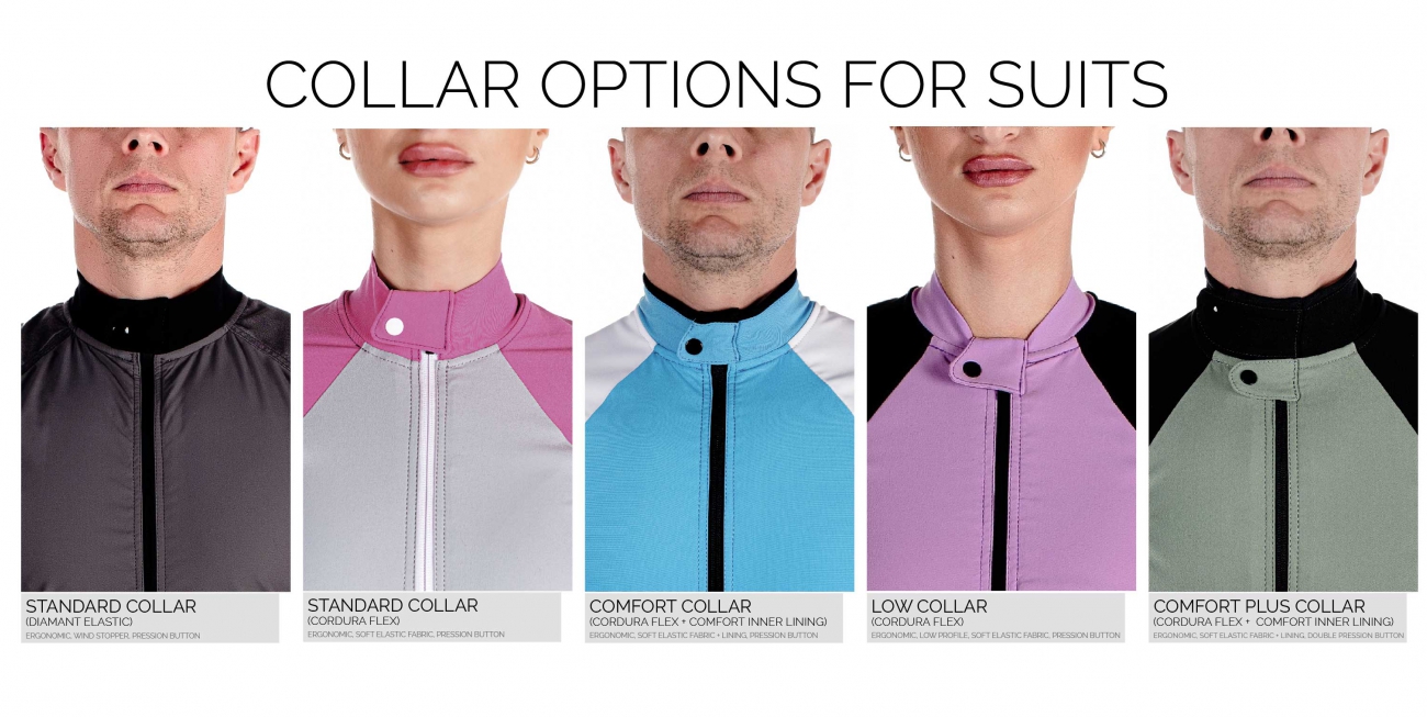 Step by step you can fully customize your suit or helmet by choosing features such as fabrics, colors, logos, options, setups and our additional graphics.